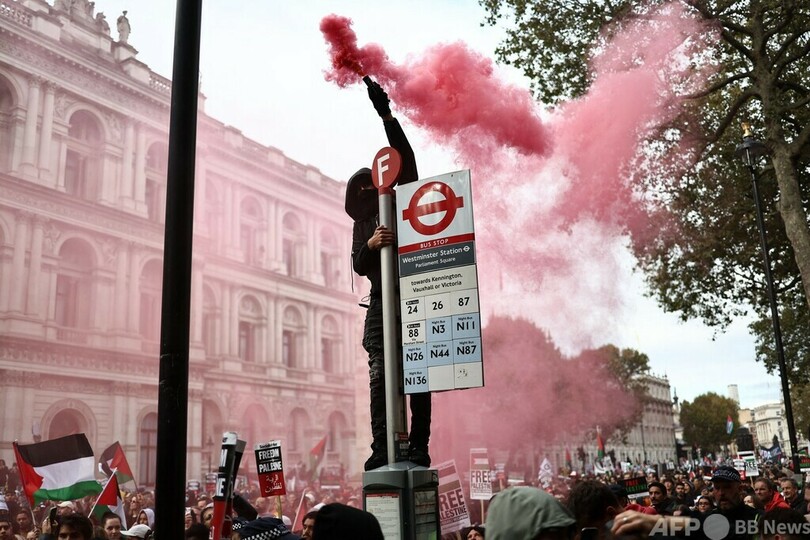 【10月22日 AFP】英ロンドン警察は21日、同市で親パレスチナ団体が主催するデモ行進が行われ、約10万人が参加したと明らかにした。同様のデモは欧州各地で相次いでいる。