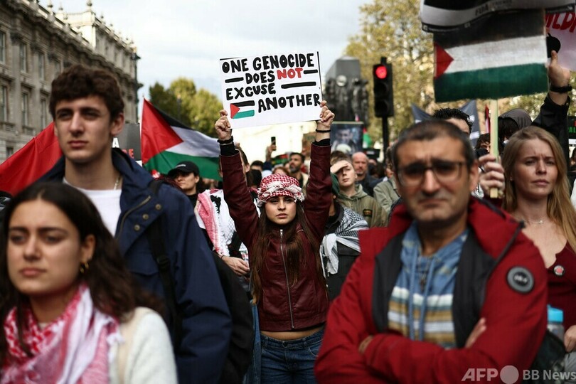 【10月22日 AFP】英ロンドン警察は21日、同市で親パレスチナ団体が主催するデモ行進が行われ、約10万人が参加したと明らかにした。同様のデモは欧州各地で相次いでいる。