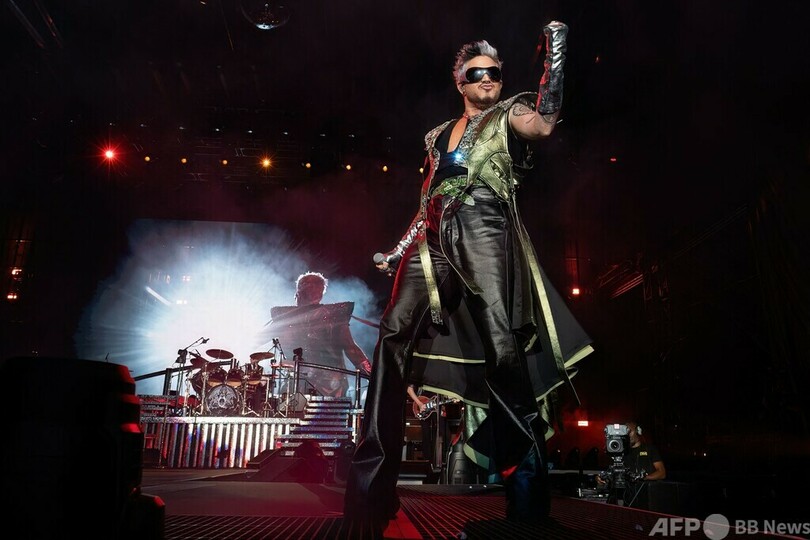 【10月22日 AFP】23F1第19戦米国GP(United States Grand Prix 2023)が行われる米テキサス州オースティン(Austin)のサーキット・オブ・ジ・アメリカズ(Circuit of The Americas)で21日、英ロックバンド「クイーン(Queen)」と米歌手アダム・ランバート(Adam Lambert)さんがタッグを組んだ「クイーン+アダム・ランバート(Queen+Adam Lambert)」がパフォーマンスを披露した。米国GPは22日に決勝が行われる。(c)AFP