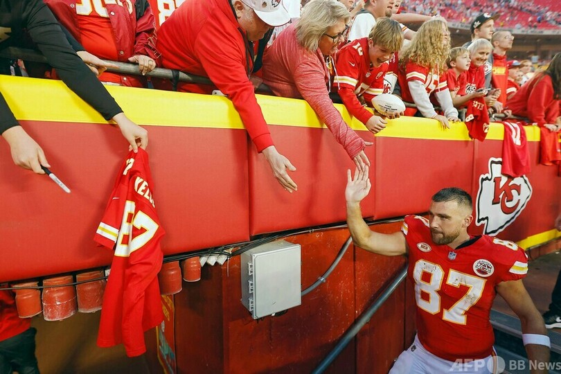 米ポップ歌手のテイラー・スウィフト(Taylor Swift)さんが、交際をうわさされるTEトラビス・ケルシー(Travis Kelce)の応援に再び姿を見せる中、同選手は12度のレシーブで179ヤードを獲得すると、1タッチダウンを記録。また、QBパトリック・マホームズ(Patrick Mahomes)は42本中32本のパス成功で424ヤードを獲得すると、4本のタッチダウンパスを通した。