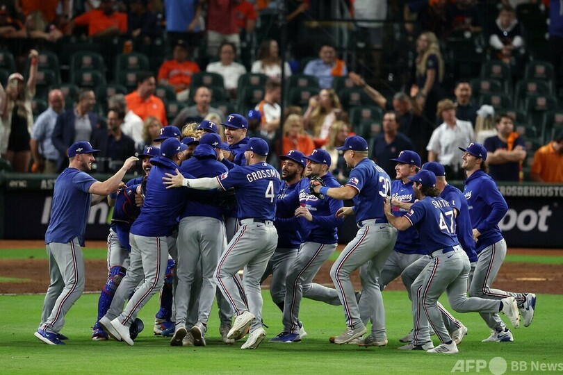 【10月24日 AFP】23MLBは23日、ア・リーグ優勝決定シリーズ(7回戦制)第7戦が行われ、テキサス・レンジャーズ(Texas Rangers)は11-4でヒューストン・アストロズ(Houston Astros)を下し、対戦成績4勝3敗でワールドシリーズ進出を決めた。