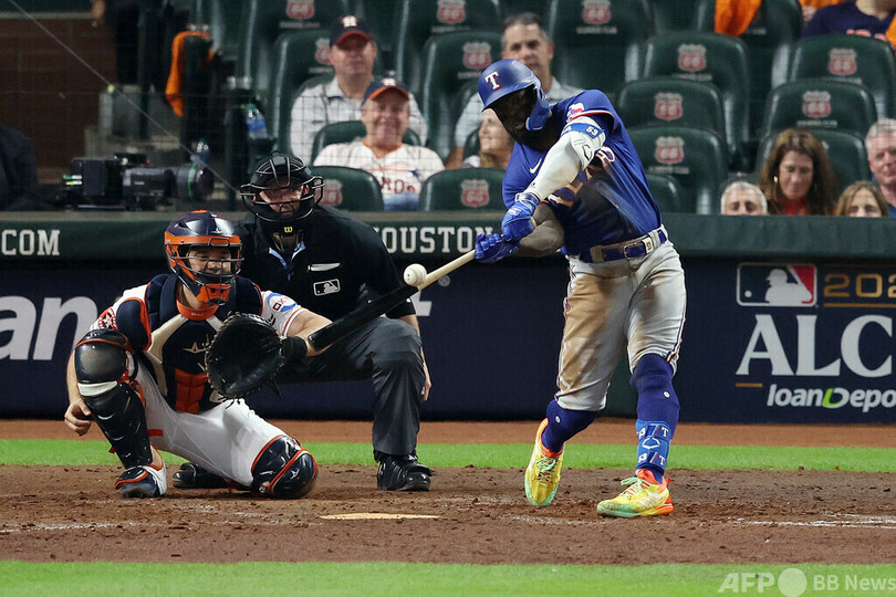 【10月24日 AFP】23MLBは23日、ア・リーグ優勝決定シリーズ(7回戦制)第7戦が行われ、テキサス・レンジャーズ(Texas Rangers)は11-4でヒューストン・アストロズ(Houston Astros)を下し、対戦成績4勝3敗でワールドシリーズ進出を決めた。