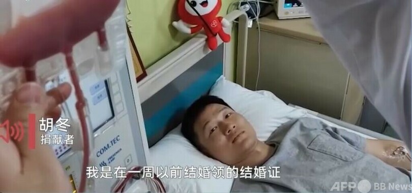 ハネムーン旅行をキャンセルしたことについて、胡さんは「妻に申し訳ないと思っている。後で埋め合わせをするつもりだ」と話しましたが、二人とも、ハネムーン旅行に比べれば、人の命を救うことの方がより重要だと思っているとしています。「自分が提供することで一つの家族が救われた。これは私と妻にとって意義のある新婚プレゼントだ」と心境を明かしました。(c)CGTN Japanese/AFPBB News