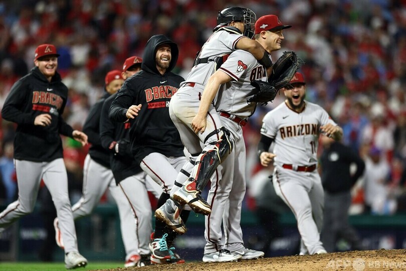 【10月25日 AFP】23MLBは24日、ナ・リーグ優勝決定シリーズ(7回戦制)第7戦が行われ、アリゾナ・ダイヤモンドバックス(Arizona Diamondbacks)は4-2でフィラデルフィア・フィリーズ(Philadelphia Phillies)を下して対戦成績を4勝3敗とし、22年ぶりのワールドシリーズ進出を決めた。
