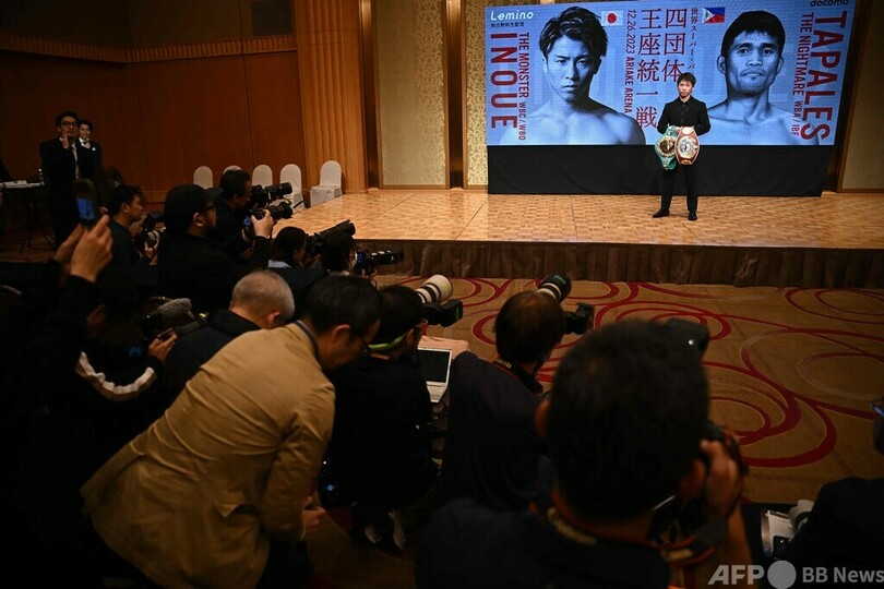 【10月25日 AFP】ボクシング、WBC、WBO世界スーパーバンタム級統一王者の井上尚弥(Naoya Inoue)は25日、12月26日にWBA、IBF世界同級統一王者のマーロン・タパレス(Marlon Tapales、フィリピン)と4団体統一戦を行うと発表した。勝利すれば、史上2人目となる2階級での4団体統一となる。