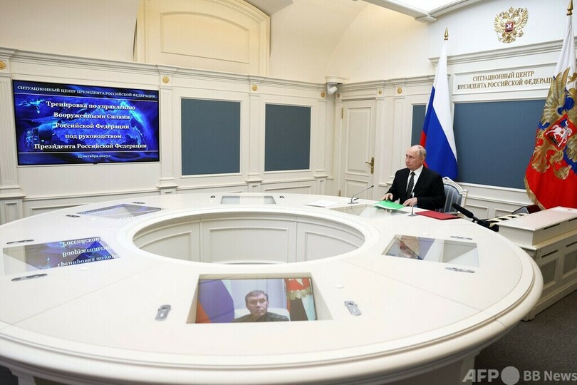 国営テレビは、ショイグ国防相がプーチン大統領に、演習では「敵の核攻撃に対する戦略核戦力部隊による大規模な報復攻撃を想定した訓練が行われる」と説明する様子を放映した。