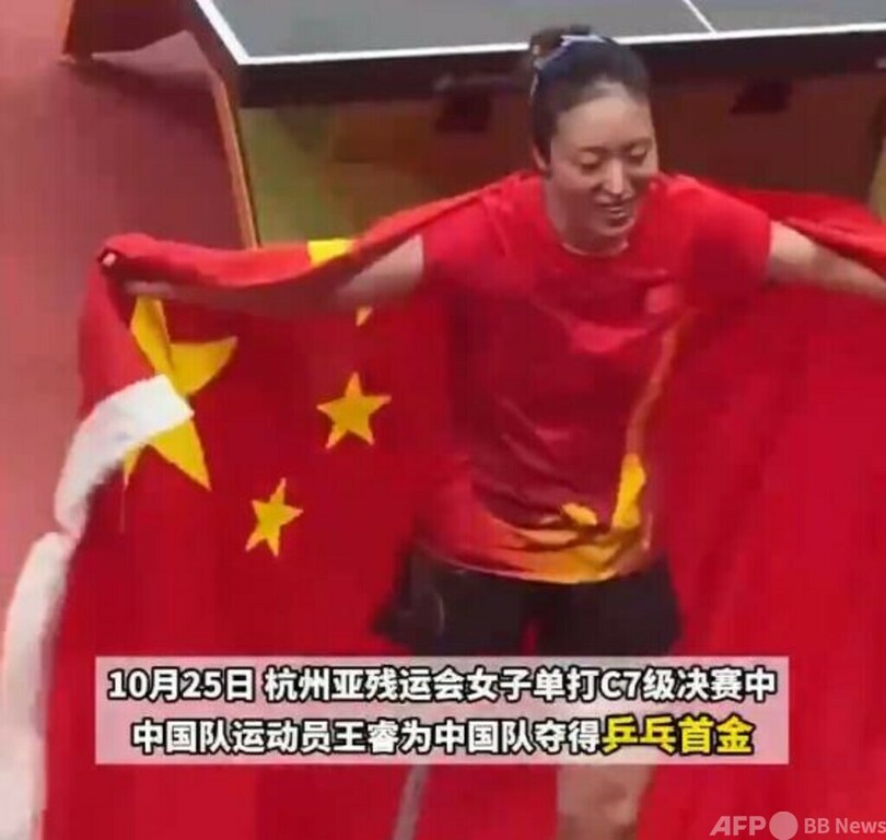 王選手は「卓球が私に与えてくれたのは競技場の栄誉だけではなく、すべての困難に打ち勝つ勇気です。身体障害である劣等感を抱いたり、他人の視線を気にしたりすることなく、前向きに生きています」と語りました。(c)CGTN Japanese/AFPBB News