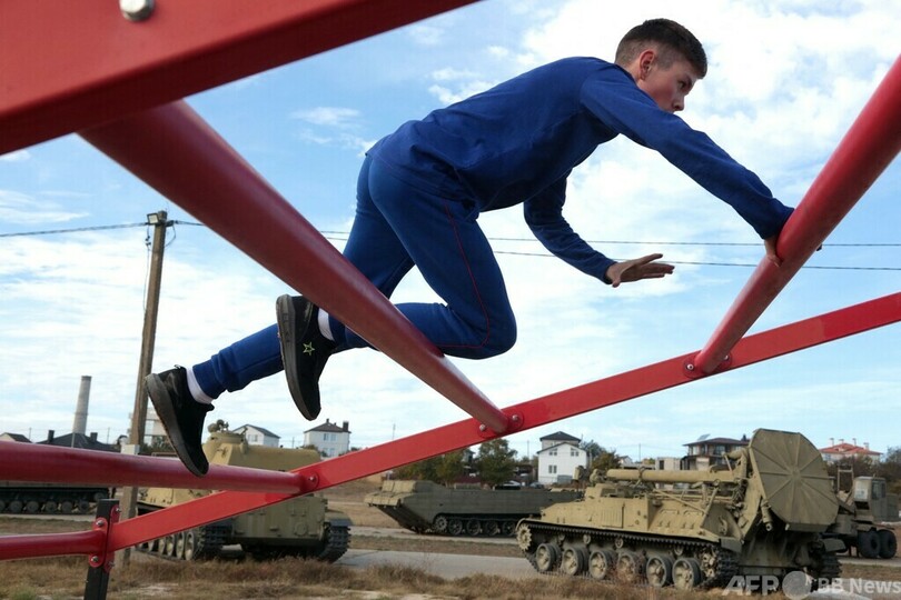 【10月29日 AFP】ロシアが併合したウクライナ南部クリミア(Crimea)半島の港湾都市セバストポリ(Sevastopol)で28日、「未来の司令官の学校」と銘打たれた軍事・愛国プログラムの訓練が行われ、ガスマスクや専用スーツを着用した少年少女らが参加した。