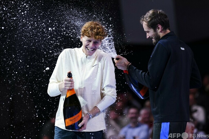 シナーとメドベージェフは今後、次週のパリ・マスターズ(Rolex Paris Masters 2023)に出場する。両選手とも、イタリア・トリノ(Turin)で行われるシーズン最終戦ATPファイナルズ(ATP Finals 2023)の出場権もすでに獲得している。(c)AFP