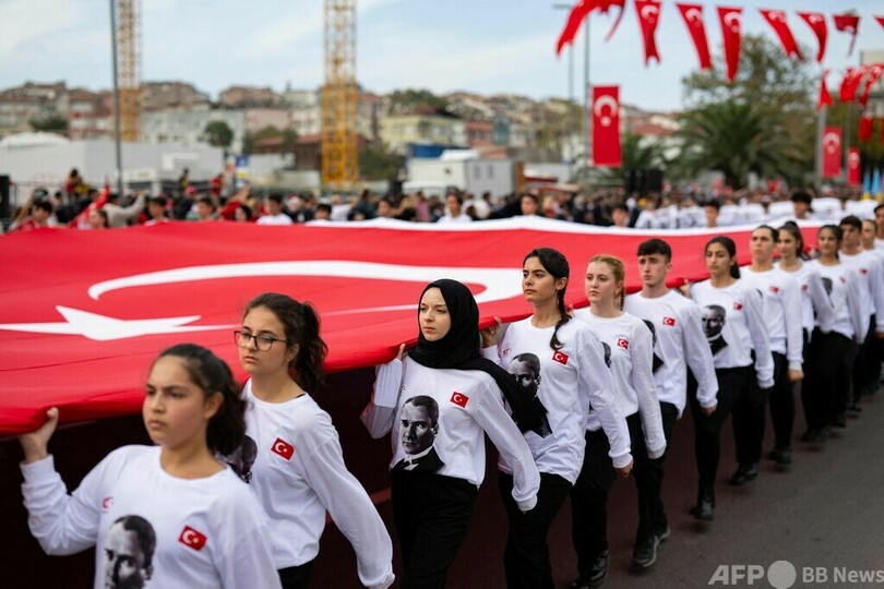 【10月30日 AFP】トルコのレジェプ・タイップ・エルドアン(Recep Tayyip Erdogan)大統領は29日、建国100年の祝賀式典で演説し、「帝国主義者」に立ち向かうと表明した。また、パレスチナ自治区への連携も示した。