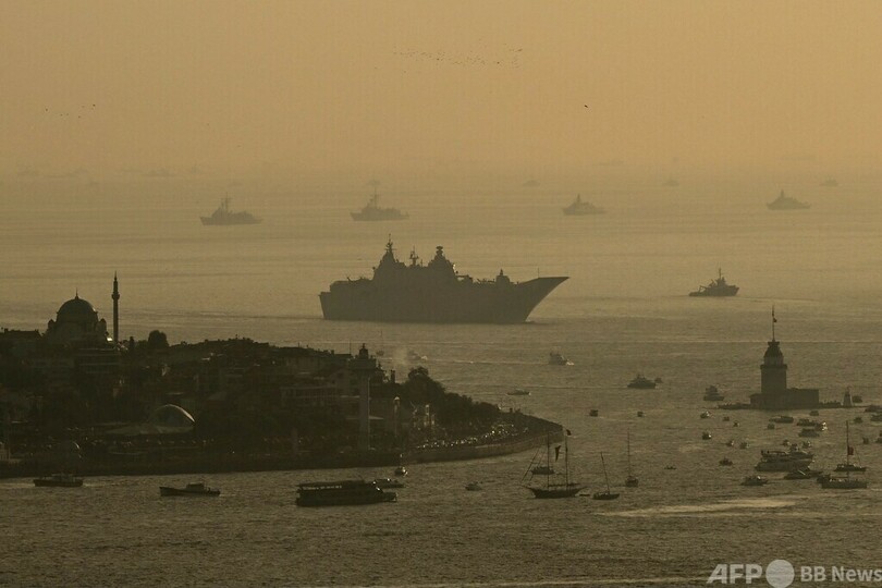 式典ではボスポラス海峡(Bosphorus Strait)を軍艦約100隻が通過、戦闘機による曲技飛行も行われた。