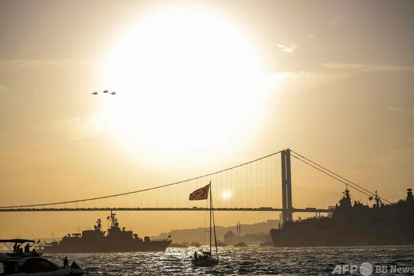 式典ではボスポラス海峡(Bosphorus Strait)を軍艦約100隻が通過、戦闘機による曲技飛行も行われた。