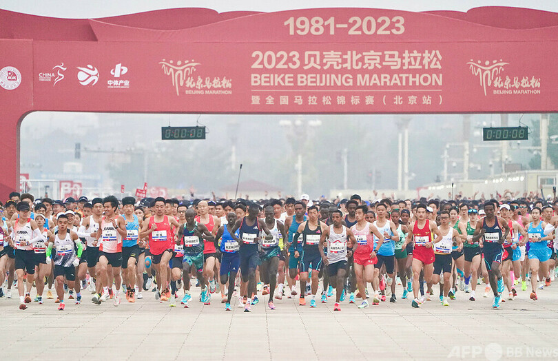 1981年に始まった北京国際マラソンは、中国陸上競技協会による最も規模の大きい種目別大会です。現在では国際的な影響力を持つスポーツ大会として、世界各地からの選手や愛好家が参加しています。(c)CGTN Japanese/AFPBB News
