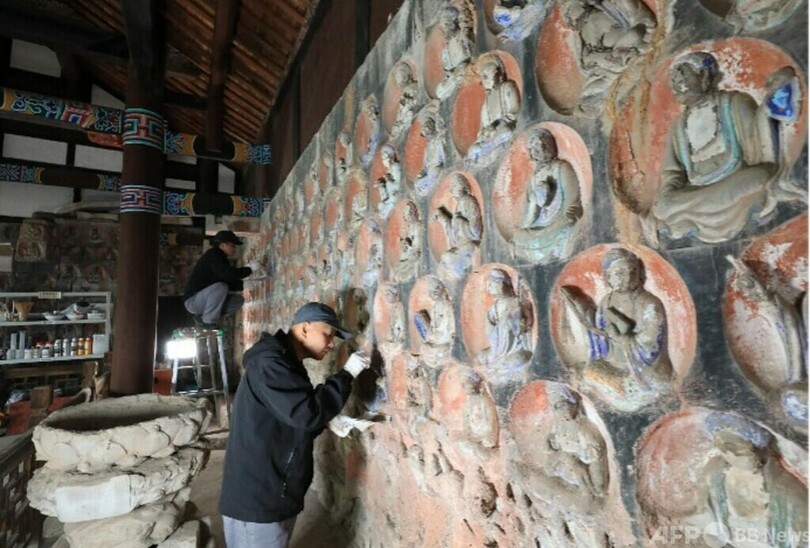 専門家によると、中国は1980年代から2000年代初頭にかけて石窟寺院の保護を全面展開した。例えば敦煌市(Dunhuang)・莫高窟(ばっこうくつ、Mogao Caves)の場合、風砂対策、壁画の修復、浸透水による亀裂の修理、壁画のデジタル化などの総合的な保護作業が実施された。