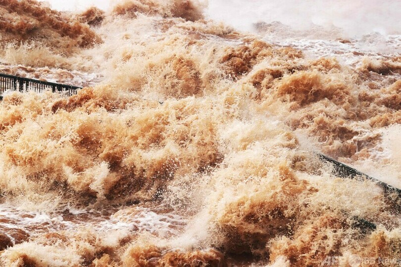 当局によると、同日の水量は2420万リットル毎秒と、通常の150万リットル毎秒の16倍超に達した。