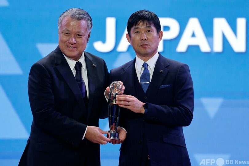 また男子の年間最優秀監督には、日本代表の森保一(Hajime Moriyasu)監督が選出されている。(c)AFP
