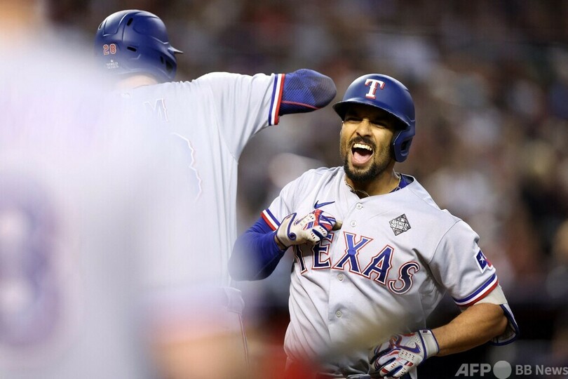 【11月1日 AFP】23MLBは31日、ワールドシリーズ(7回戦制)第4戦が行われ、テキサス・レンジャーズ(Texas Rangers)は序盤に大量得点を挙げて11-7でアリゾナ・ダイヤモンドバックス(Arizona Diamondbacks)を下し、球団初のタイトル獲得に王手をかけた。