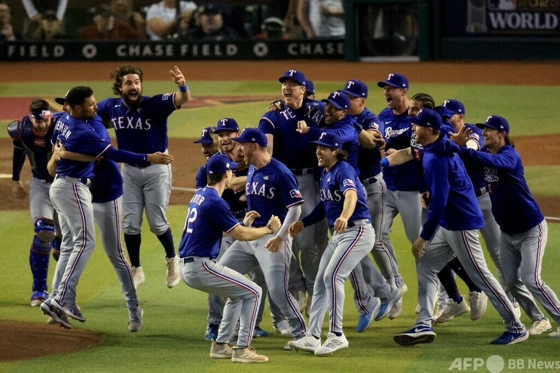 【11月2日 AFP】(更新)23MLBは1日、ワールドシリーズ(7回戦制)第5戦が行われ、テキサス・レンジャーズ(Texas Rangers)は5-0でアリゾナ・ダイヤモンドバックス(Arizona Diamondbacks)を下して戦績を4勝1敗とし、球団創設63年目で初優勝を飾った。