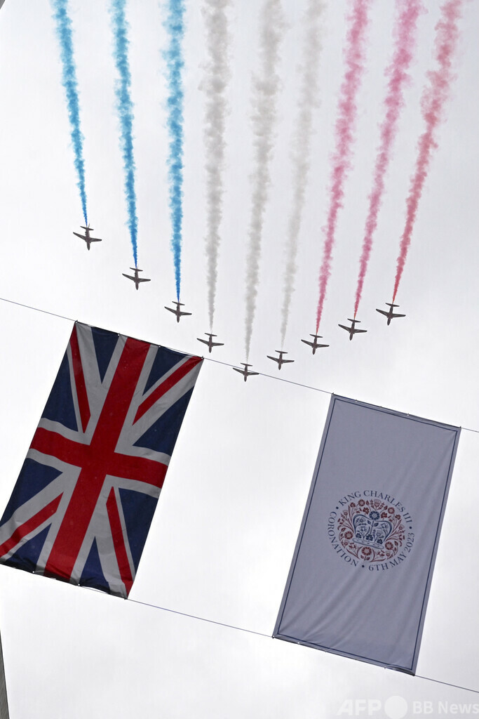 レッドアローズは毎年数多くの展示飛行を行っており、昨年5月のチャールズ国王(King Charles III)の戴冠式でも空に赤、白、青の軌跡を描いた。