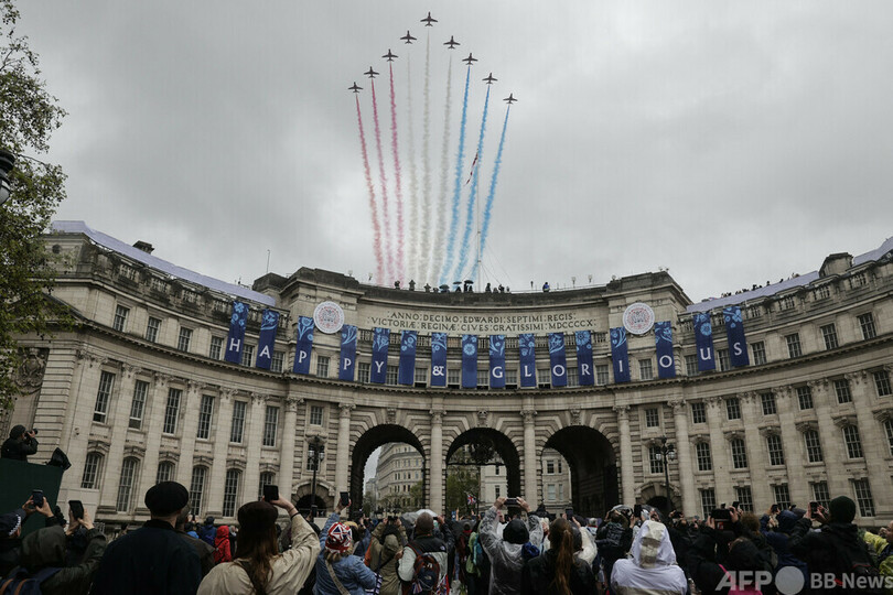 レッドアローズは毎年数多くの展示飛行を行っており、昨年5月のチャールズ国王(King Charles III)の戴冠式でも空に赤、白、青の軌跡を描いた。