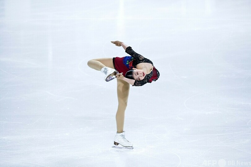 日本勢は住吉りをん(Rion Sumiyoshi)が61.72点で5位、樋口新葉(Wakaba Higuchi)が60.29点で6位、千葉百音(Mone Chiba)が56.59点で9位につけている。(c)AFP