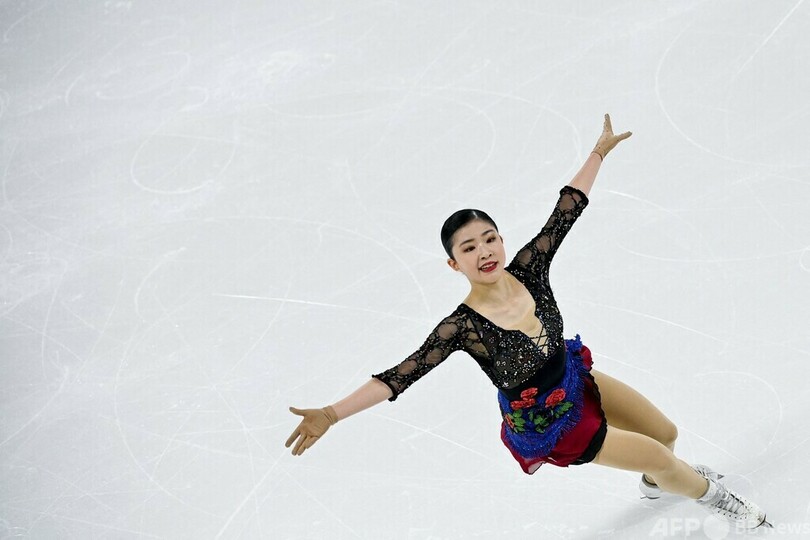 日本勢は住吉りをん(Rion Sumiyoshi)が61.72点で5位、樋口新葉(Wakaba Higuchi)が60.29点で6位、千葉百音(Mone Chiba)が56.59点で9位につけている。(c)AFP