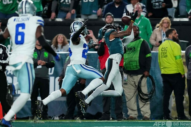 【11月6日 AFP】23NFLは5日、第9週の試合が行われ、フィラデルフィア・イーグルス(Philadelphia Eagles)は28-23でダラス・カウボーイズ(Dallas Cowboys)を下し、成績をリーグ最高の8勝1敗とした。
