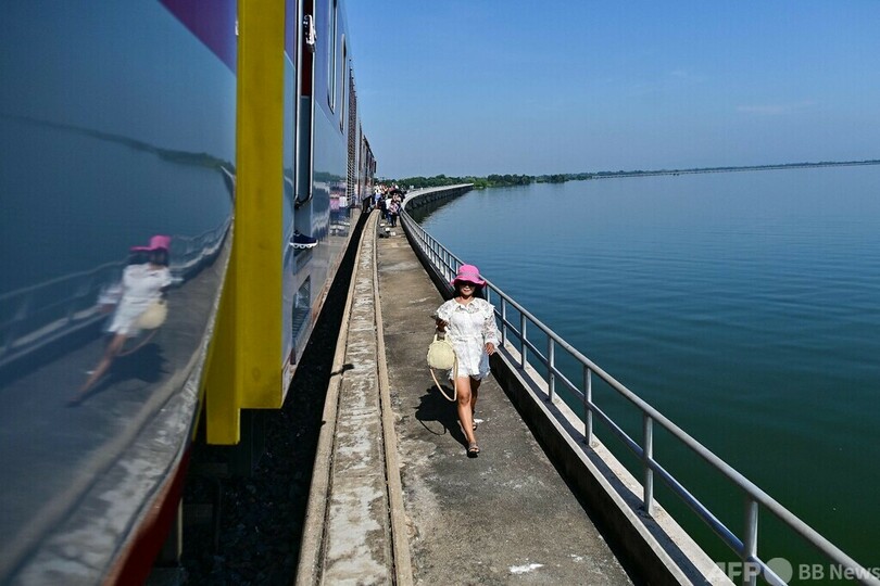 【11月11日 AFP】ダムに架かる狭い橋に止まった列車から乗客が降りてきて、自撮りをしたり、周りに広がる景色を満喫したりするのを、船乗りが一人、眺めていた。