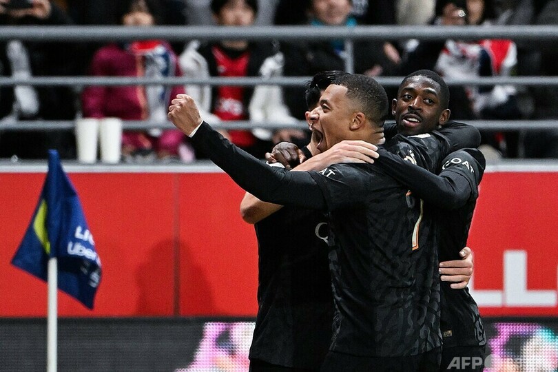 【11月12日 AFP】23-24フランス・リーグ1は11日、第12節の試合が行われ、パリ・サンジェルマン(Paris Saint-Germain、PSG)はキリアン・エムバペ(Kylian Mbappe)がハットトリックを決めてスタッド・ランス(Stade Reims)との上位対決に3-0で勝利し、リーグ首位に浮上した。
