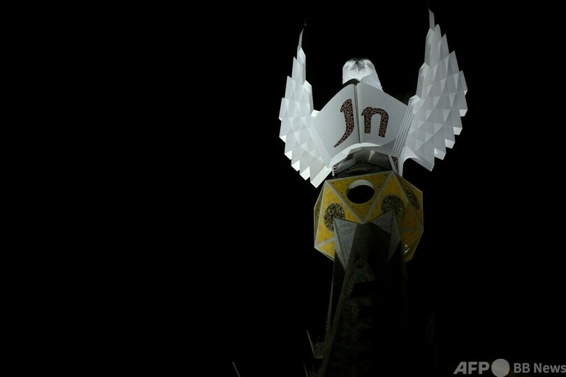 【11月13日 AFP】スペイン・バルセロナ(Barcelona)で12日、建築家アントニ・ガウディ(Antoni Gaudi)が設計したサグラダ・ファミリア(Sagrada Familia)教会が着工から141年を経て新たに2塔が完成したのを祝い、ライトアップが行われた。