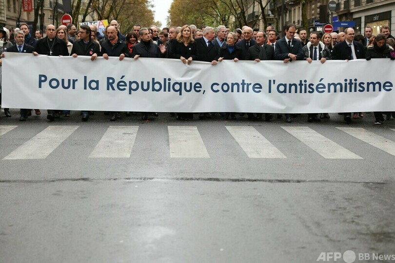 反ユダヤ主義への抗議デモに18万人超 仏