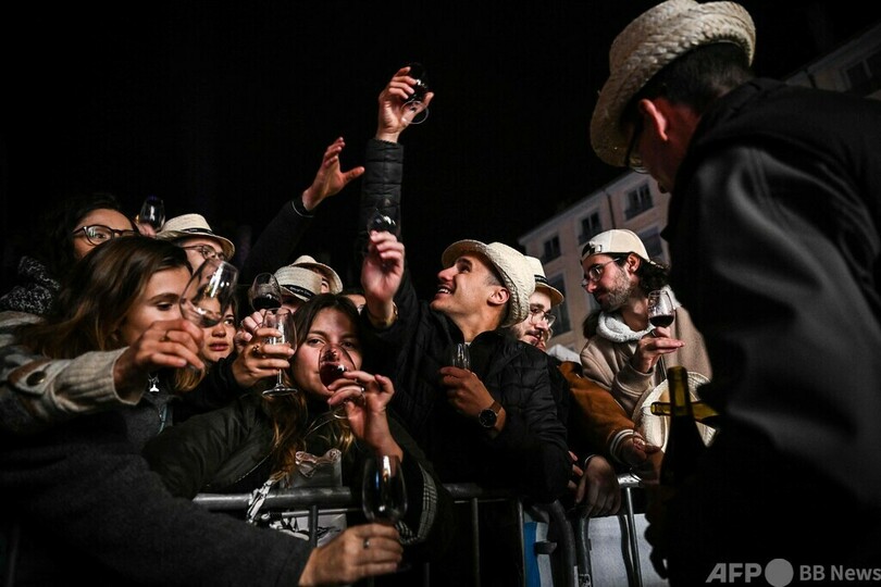 産地ボージョレでは、数千人がカウントダウンイベントに参加するなど、国内各地で解禁が祝われた。(c)AFP