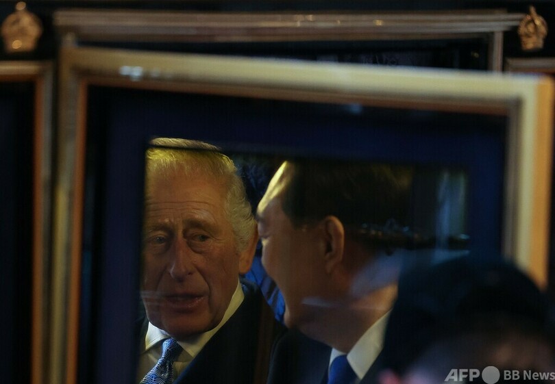 【11月22日 AFP】英国を国賓として訪問中の韓国の尹錫悦(ユン・ソンニョル、Yoon Suk-yeol)大統領夫妻は21日、チャールズ英国王(King Charles III)が主催するバッキンガム宮殿(Buckingham Palace)での晩さん会に出席した。