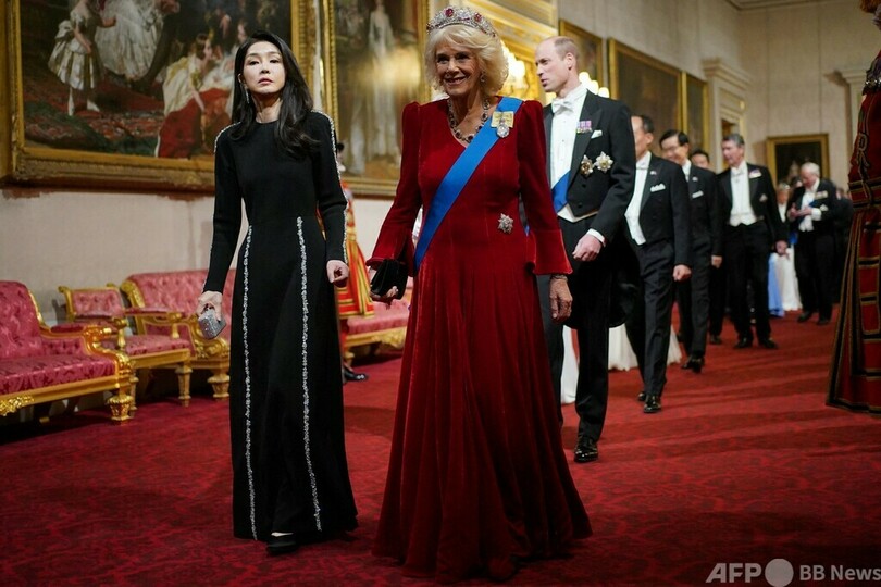 【11月22日 AFP】英国を国賓として訪問中の韓国の尹錫悦(ユン・ソンニョル、Yoon Suk-yeol)大統領夫妻は21日、チャールズ英国王(King Charles III)が主催するバッキンガム宮殿(Buckingham Palace)での晩さん会に出席した。