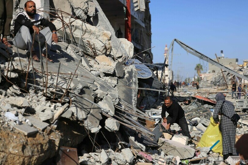 国連(UN)によると、ガザに住む約240万人のうち約170万人が避難を余儀なくされている。民家の半数以上が半壊または全壊しているとされ、住民が自宅に戻っても家が住める状態にない恐れもある。(c)AFP/Adel Zaanoun with Yahya Hassouna in Rafah