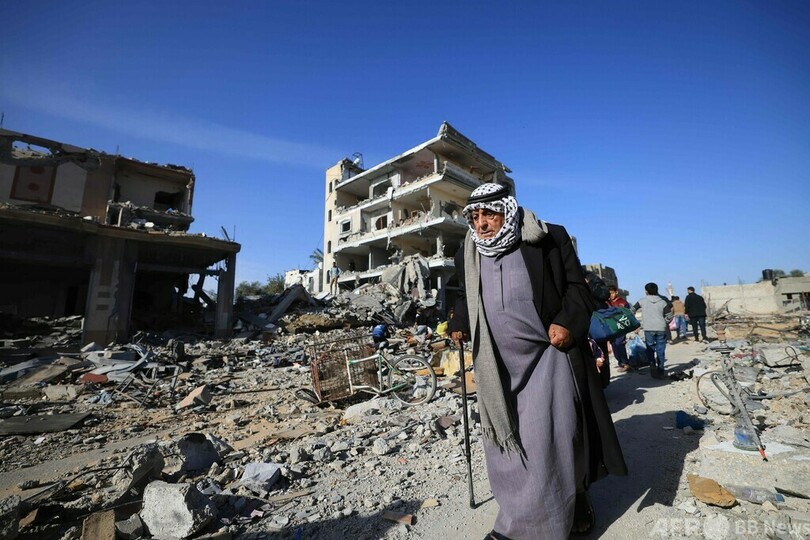 国連(UN)によると、ガザに住む約240万人のうち約170万人が避難を余儀なくされている。民家の半数以上が半壊または全壊しているとされ、住民が自宅に戻っても家が住める状態にない恐れもある。(c)AFP/Adel Zaanoun with Yahya Hassouna in Rafah