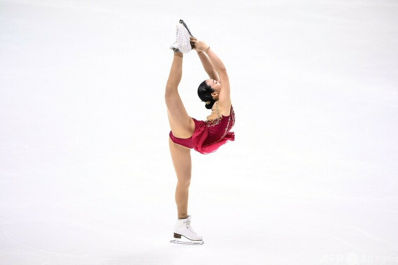 日本勢は三原舞依(Mai Mihara)が62.82点で4位、青木祐奈(Yuna Aoki)が58.28点で8位、樋口新葉(Wakaba Higuchi)が52.18点で11位につけた。(c)AFP