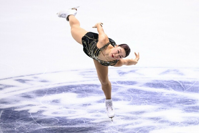 日本勢は三原舞依(Mai Mihara)が62.82点で4位、青木祐奈(Yuna Aoki)が58.28点で8位、樋口新葉(Wakaba Higuchi)が52.18点で11位につけた。(c)AFP