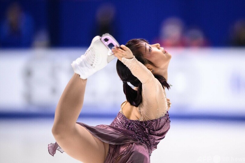 日本勢は三原舞依(Mai Mihara)が62.82点で4位、青木祐奈(Yuna Aoki)が58.28点で8位、樋口新葉(Wakaba Higuchi)が52.18点で11位につけた。(c)AFP