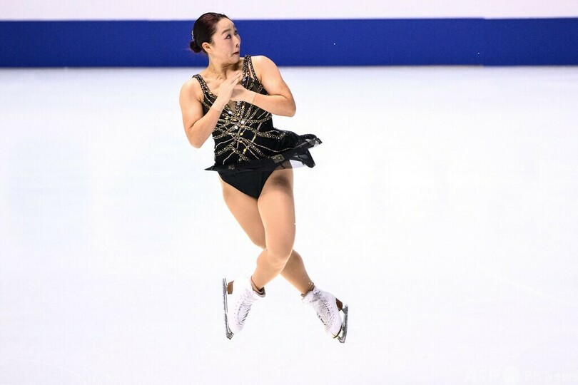 日本勢は三原舞依(Mai Mihara)が62.82点で4位、青木祐奈(Yuna Aoki)が58.28点で8位、樋口新葉(Wakaba Higuchi)が52.18点で11位につけた。(c)AFP