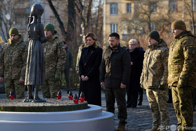 25日は、ソ連の独裁者ヨシフ・スターリン(Joseph Stalin)政権下の1930年代にウクライナで起きた大飢饉(ききん)「ホロドモール(Holodomor、ウクライナ語で飢饉による殺害)」の犠牲者の追悼日。ウォロディミル・ゼレンスキー(Volodymyr Zelensky)大統領はSNSで、「ロシア指導部は殺りくできることを誇っている」と怒りをあわらにした。(c)AFP