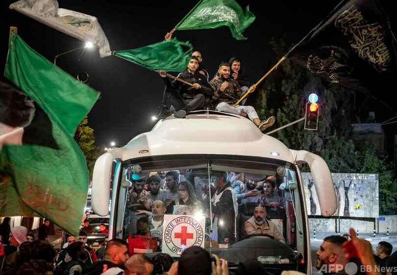 一方、ハマスはこの日、人質17人を新たにイスラエル側に引き渡した。イスラエルも収監中のパレスチナ人39人を釈放した。
