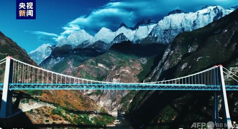 同路線は雲南省北西部から青海チベット高原の南東の周縁部にかけての山脈地帯を抜けるので、全線に橋34基、トンネル20基が建設され、路線における橋とトンネルの割合は73.4%です。また、インドプレートとユーラシアプレートの衝突帯の前線にあり、中国では地殻構造活動が最も強い地域の一つでもあります。標高2400メートルの位置にある麗江駅を出発した列車は、標高3274メートルのシャングリラ駅まで登って行くことになります。同路線は典型的な高原鉄道であり、施工建設は困難を極めたとのことです。(c)CGTN Japanese/AFPBB News