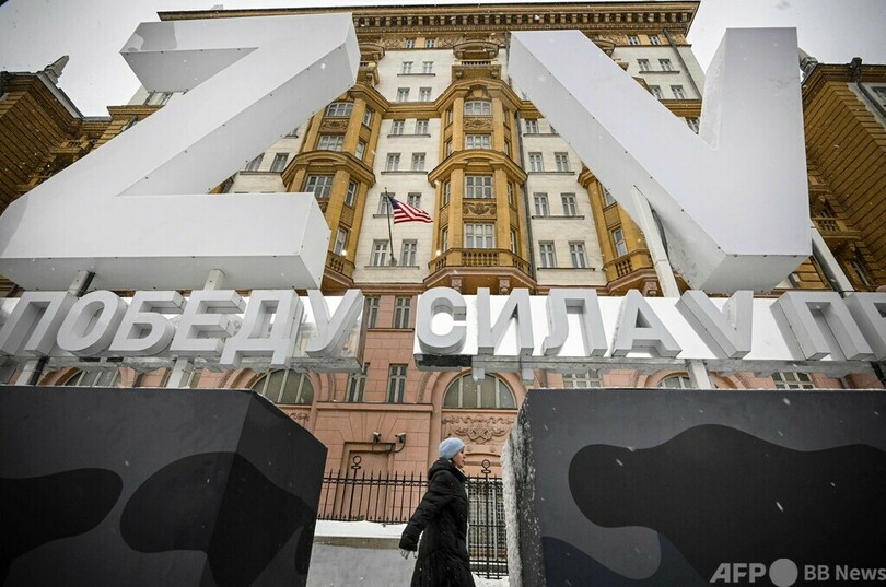 米大使館前にウクライナ侵攻支持のシンボル「Z」と「V」 ロシア