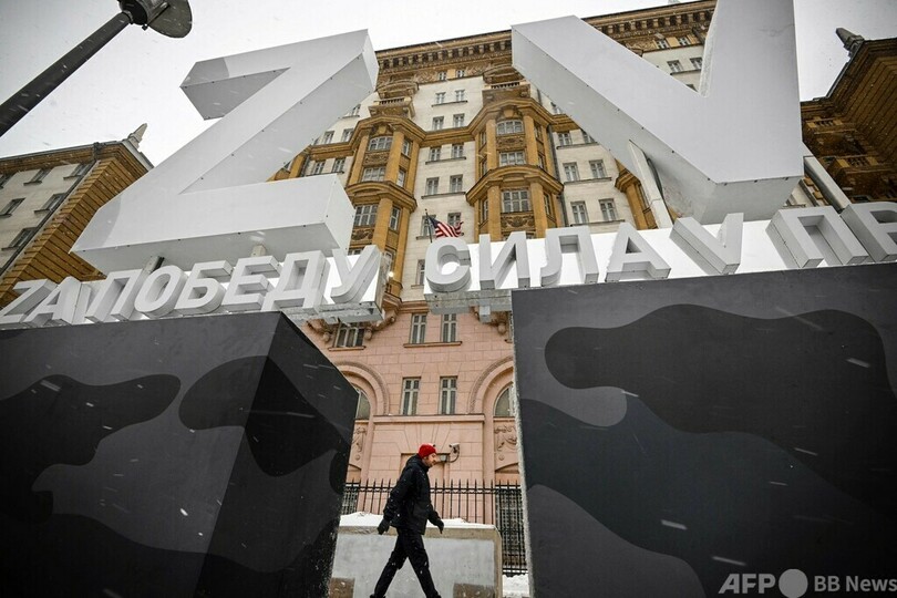 米大使館前にウクライナ侵攻支持のシンボル「Z」と「V」 ロシア