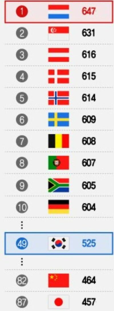 今回の1位はオランダ、2位はシンガポール、3位はオーストリア。これに北欧のデンマーク、ノルウェー、スウェーデンが続いた。