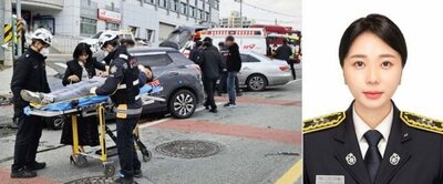 消防署に立ち寄っていた非番のパク・ジヘ消防士(34)は車が衝突した「バン」という音を聞いて外に飛び出した。
