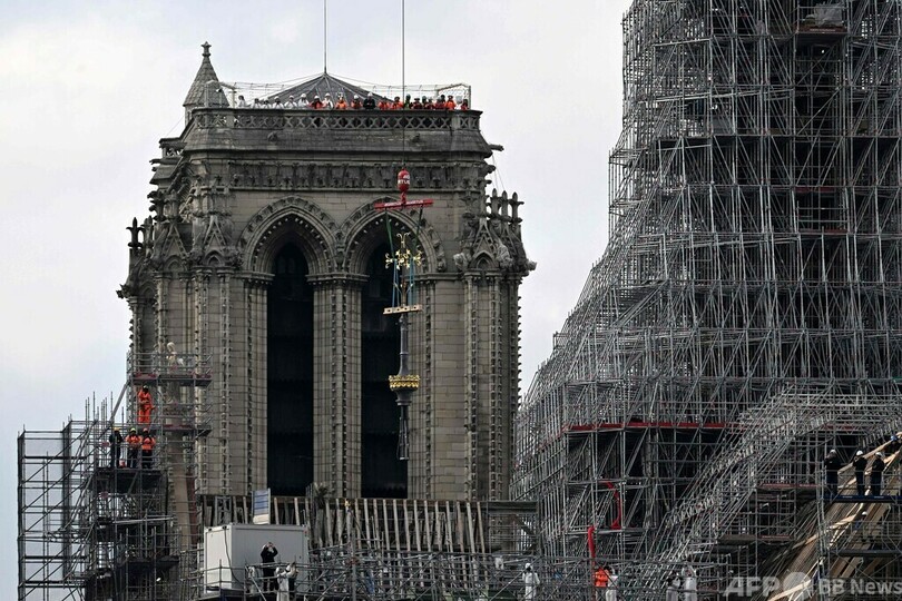 ノートルダム大聖堂、新たな尖塔に十字架設置 仏パリ