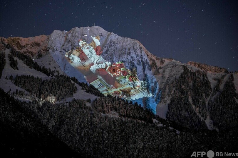 【12月8日AFP】スイスのロッシェドネー(Rochers-de-Naye)山(標高2042メートル)の山腹に6日、巨大なサンタクロースが登場した。