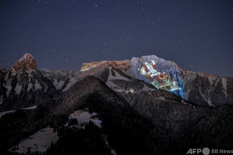 【12月8日AFP】スイスのロッシェドネー(Rochers-de-Naye)山(標高2042メートル)の山腹に6日、巨大なサンタクロースが登場した。